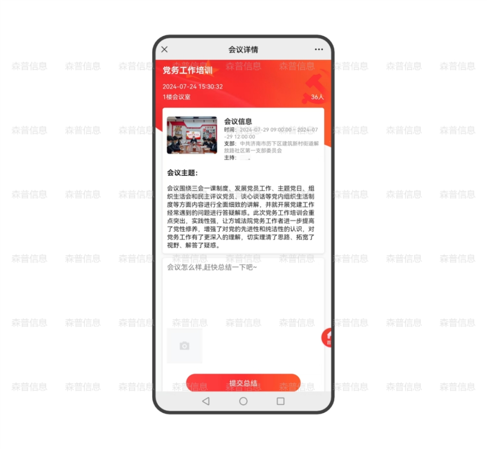 参会提醒功能会在会议开始前自动通知所有参会人员,确保无人遗漏。在会议即将开始时,党员会收到系统发送的提醒通知,确保他们能够准时参加。