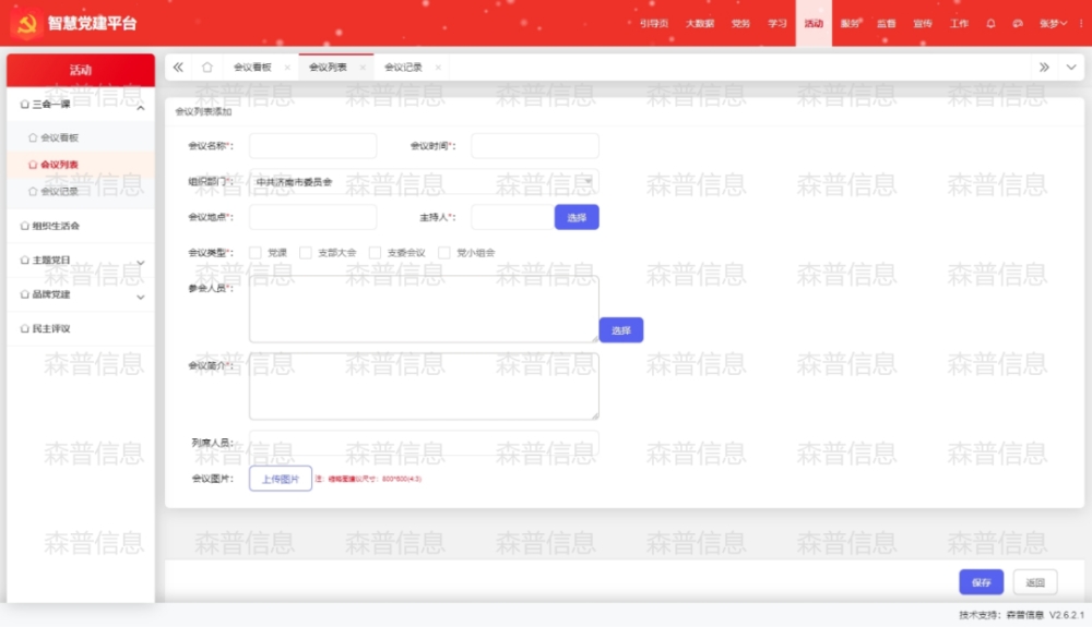 “三会一课”是党的基层组织生活的核心,涵盖了支部党员大会、支部委员会、党小组会以及党课的定期开展。这一制度对于加强党的建设、提升党员素质、增强党组织的凝聚力与战斗力至关重要。然而,在新时代背景下,如何提升“三会一课”的管理效率和质量?今天,让我们一起深入了解森普智慧党建平台的核心功能——三会一课全过程纪实痕迹化管理,探索它如何推动党建工作的数字化转型,为“三会一课”注入新时代活力。